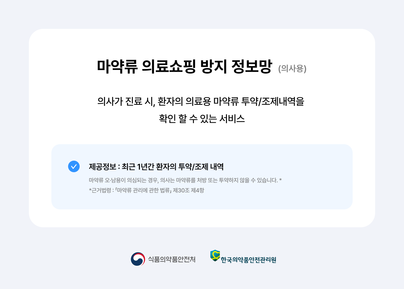 ※ 마약류 오·남용이 의심되는 경우, 의사는 마약류를 처방 또는 투약하지 않을 수 있어요.