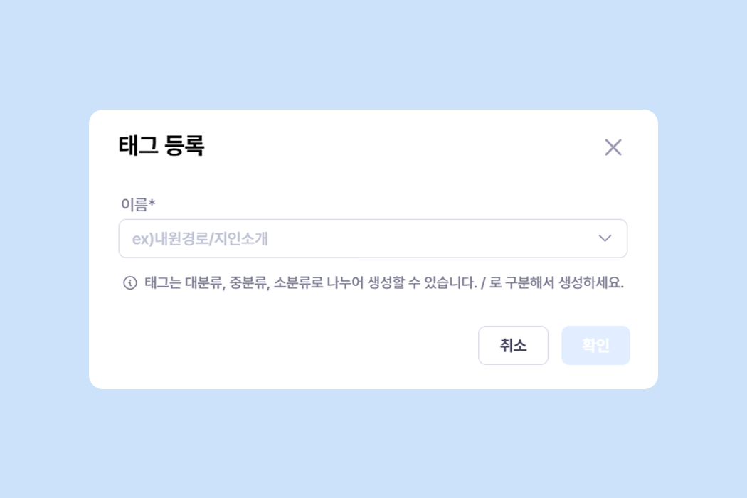 환자태그는 '/'를 통해서 대/중/소분류를 나누어 등록할 수 있어요.