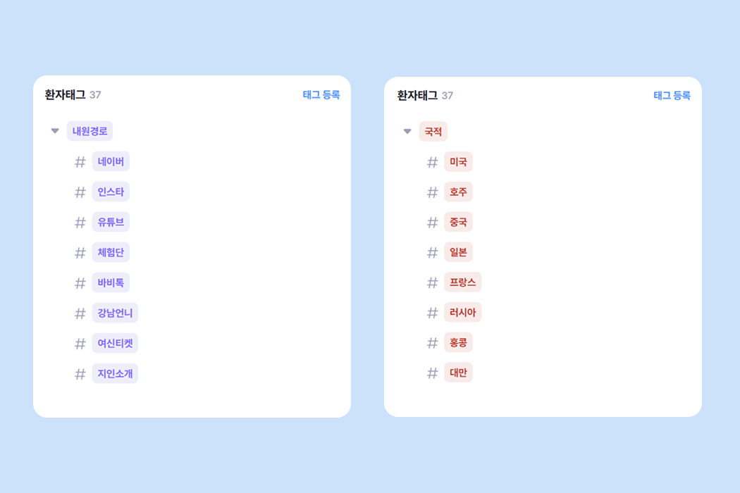 대/중/소분류로 나뉜 환자태그를 확인할 수 있어요.