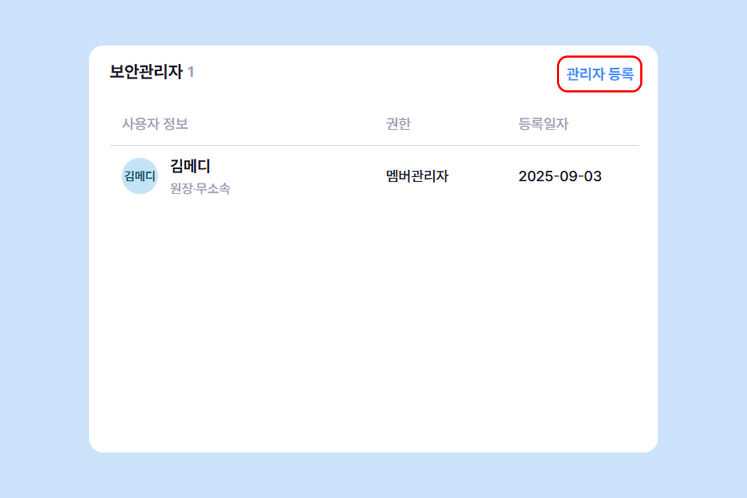 ✅ 보안관리자는 원내, 외 어느 곳에서든 접속이 가능하니 신중히 지정해주세요.