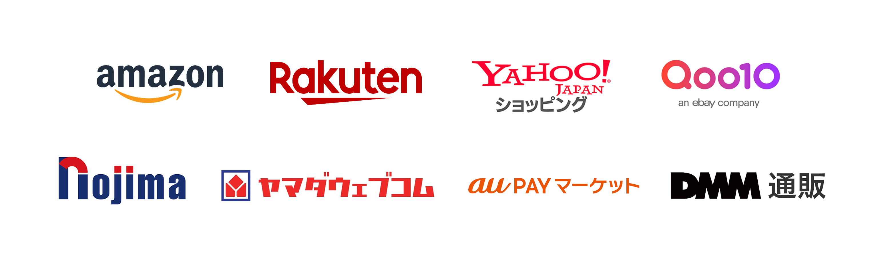 現在はAmazon、楽天市場、Yahoo!ショッピング、Qoo10、ノジマ電気、ヤマダウェブコム、au PAYマーケット、DMM通販に対応しています。その他、対象サイトは順次拡大していく予定です。