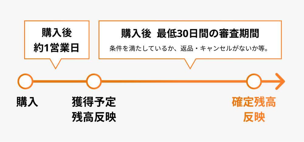 通常、獲得予定残高には1営業日以内に反映されます。反映まで少々お待ちください。