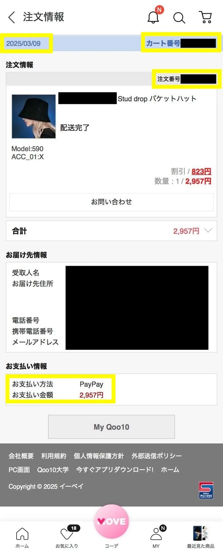 以上の情報はQoo10サイト内マイページより、購入履歴 > 注文情報の順に進むことでご確認いただけます。