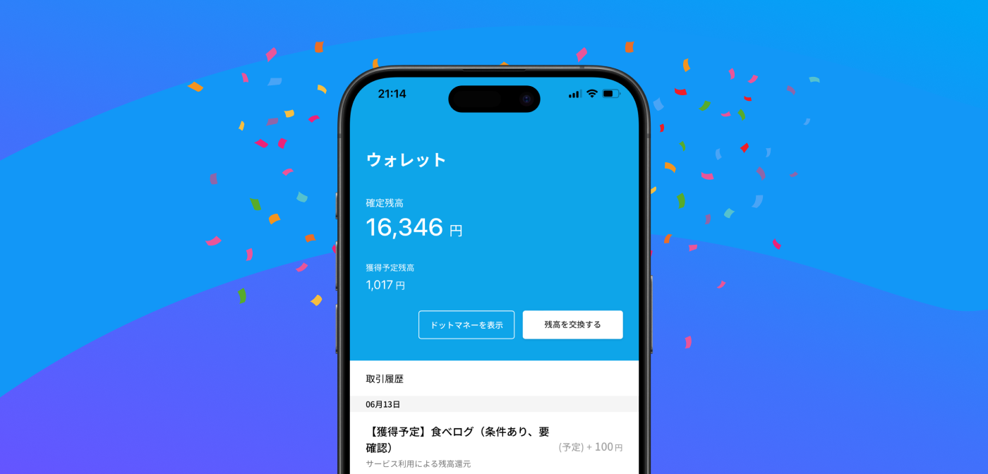 ウォレット上で確認できる内容 PLUGアプリ内[ウォレット]タブでは、獲得したキャッシュバックの履歴や残高を交換した履歴を確認することができます。 各表示の詳細は以下のとおりです。 確定残高 獲得が確定した分のキャッシュバック金額が反映されます。 取引履歴上で【獲得予定】ステータスのキャッシュバック金額はここには反映されません。 確定残高はいつでも[残高を引き出す]ボタンから残高の口座振込などのお手続きが可能です。 獲得予定残高 獲得を予定しているキャッシュバック金額が反映されます。 この残高には確定残高は含まれず、未確定の残高のみが反映されます。 取引履歴上で【獲得予定】となっているキャッシュバック金額のみが合計されています。 この残高は未確定のため、引き出すことはできません。 残高を引き出す ここから確定残高の引き出しが可能です。 PLUGの確定残高は一度提携サービスの「ドットマネー」へ残高を移行した後、ドットマネー上で振込・交換のお手続きを行います。 引き出しの詳しい手順は以下のヘルプページよりご確認ください。 ▶︎残高を引き出したい(交換したい) 交換履歴を見る このボタンをタッ