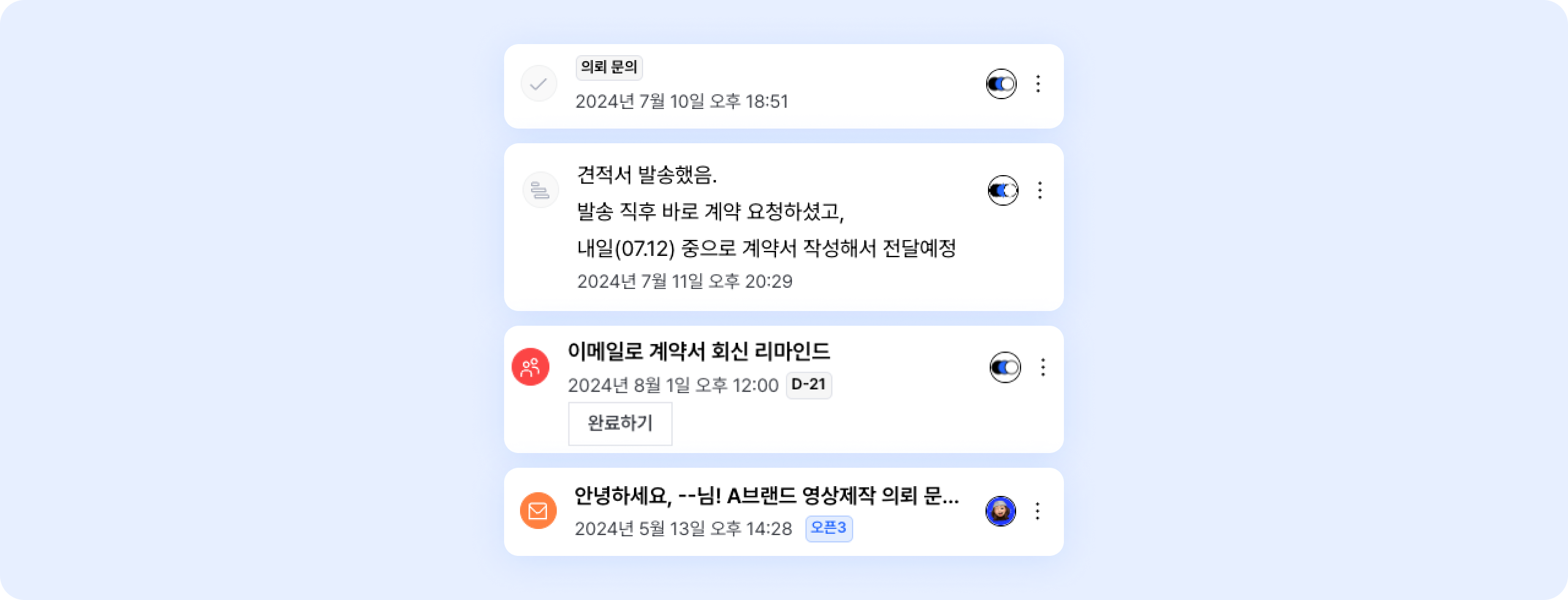 동시에 영업 건이 여러개 진행되면, 헷갈리고 어려워요.