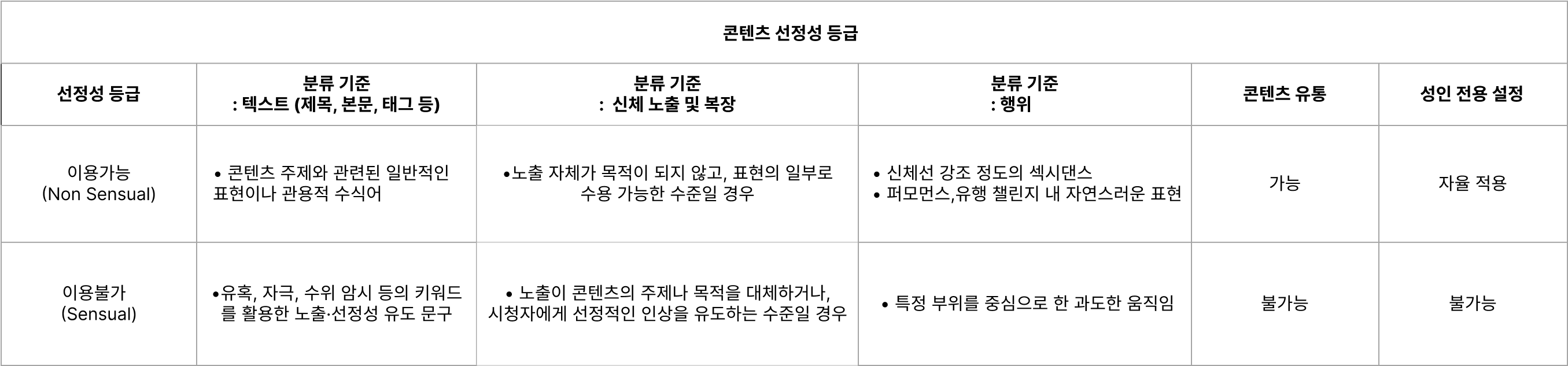 노출 정도와 무관하게, 성적 흥분·자극 또는 유혹·성행위를 명시적으로 유도하거나 이를 목적으로 구성된 콘텐츠 일체