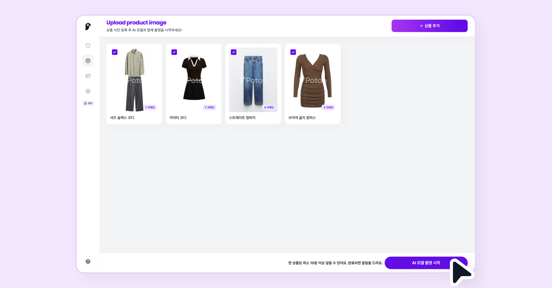 AI 모델 촬영은 상품 하나당 최소 10분 이상 걸릴 수 있어요.