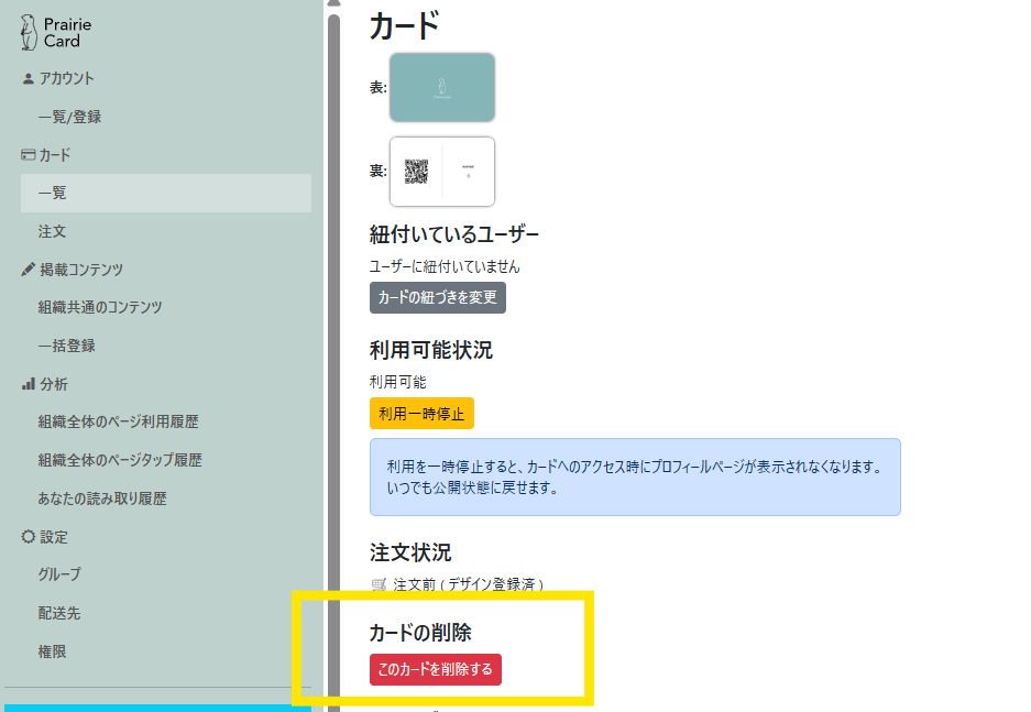特定のユーザーアカウントに紐づいていないカードの情報を管理画面から削除する方法になります。
