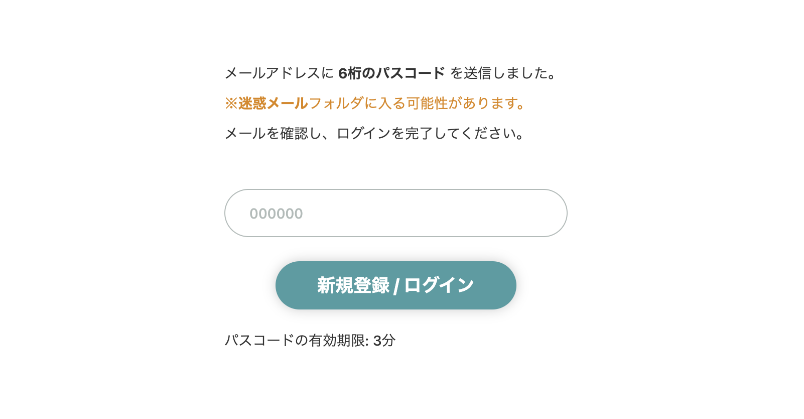 ご入力いただいたメールアドレスに届いた認証コードを入力してください