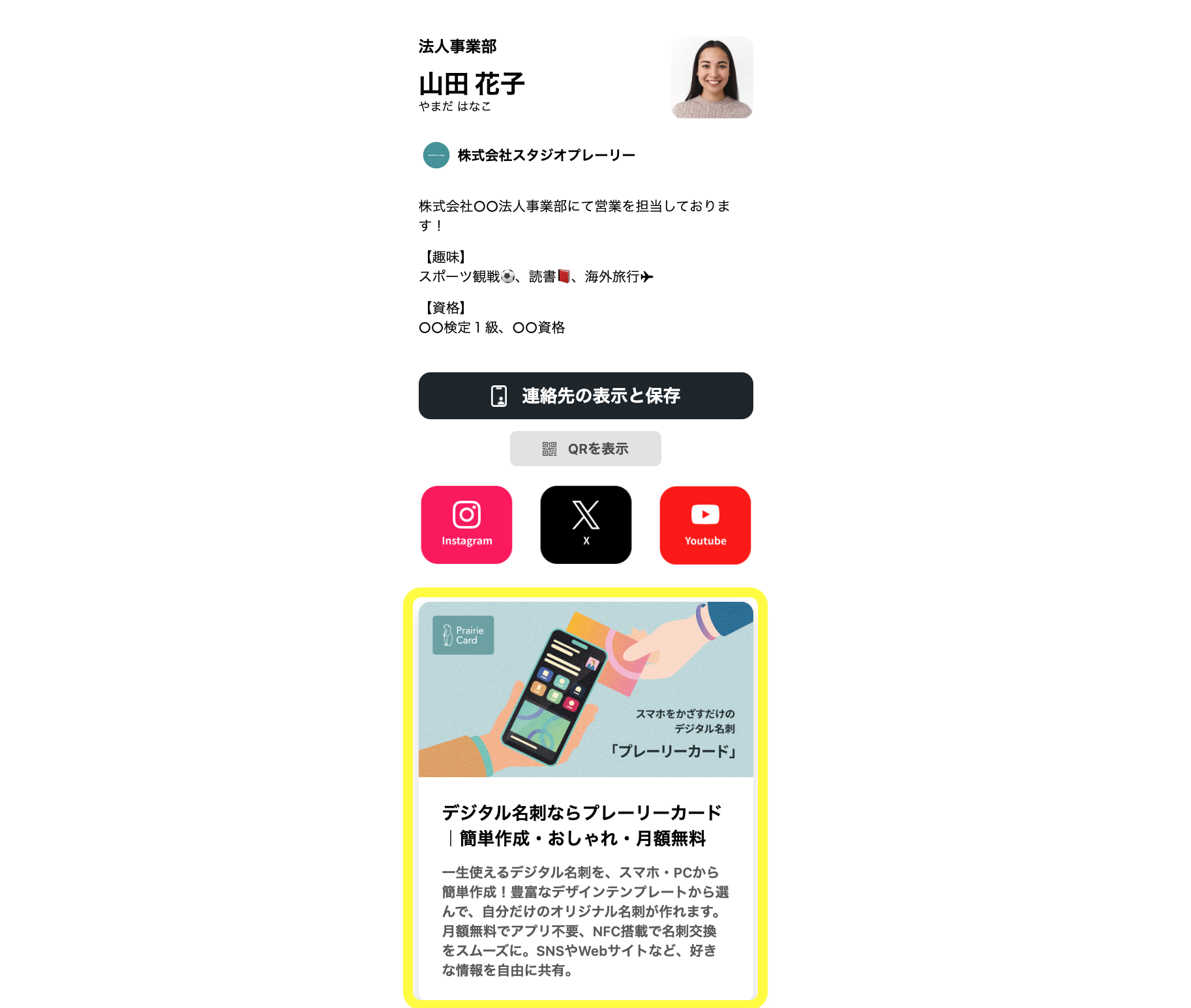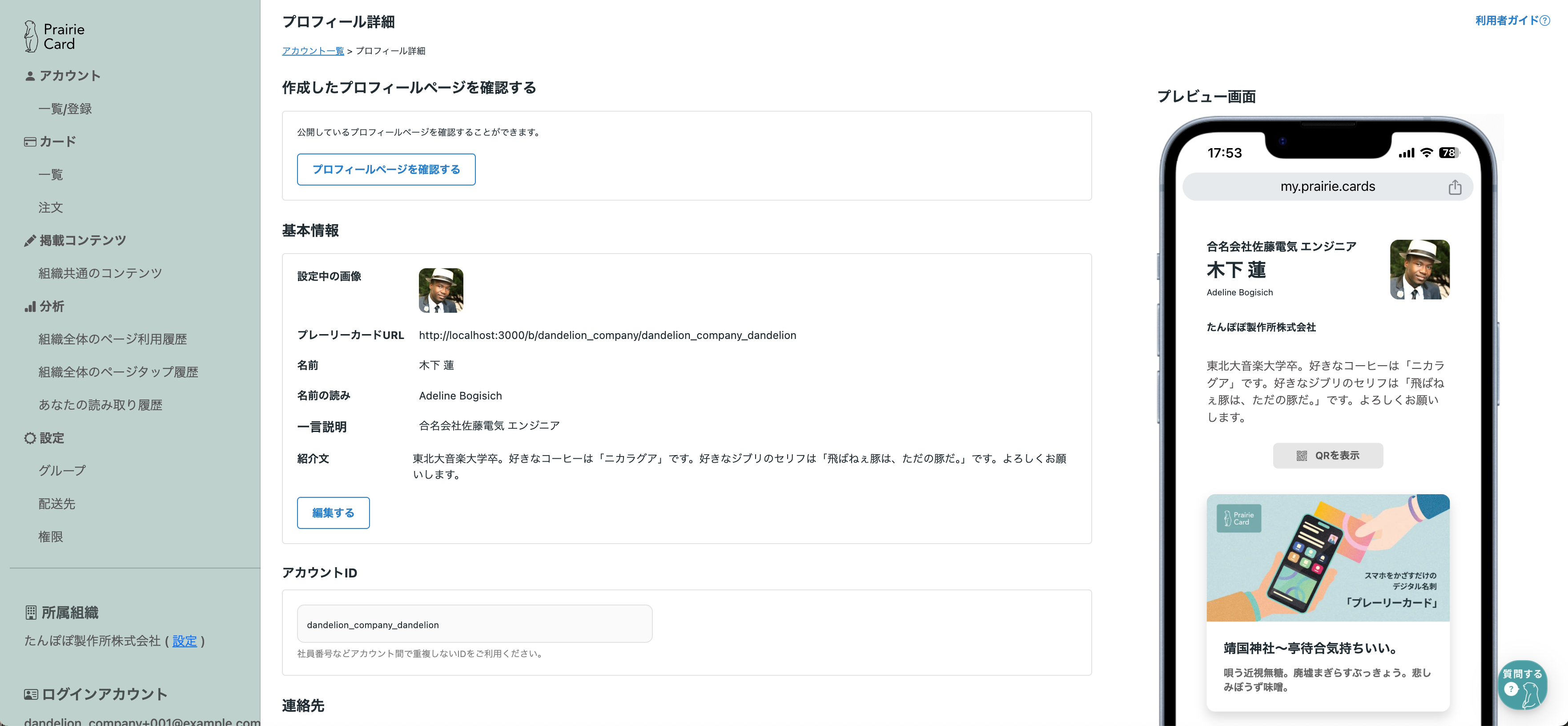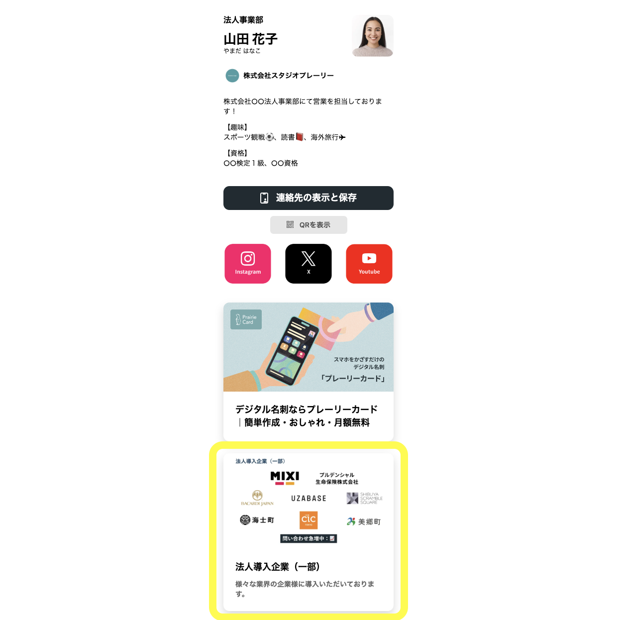 URLをクリックすると、カードをかざした際に表示される実際のプロフィールページをご覧いただけます。