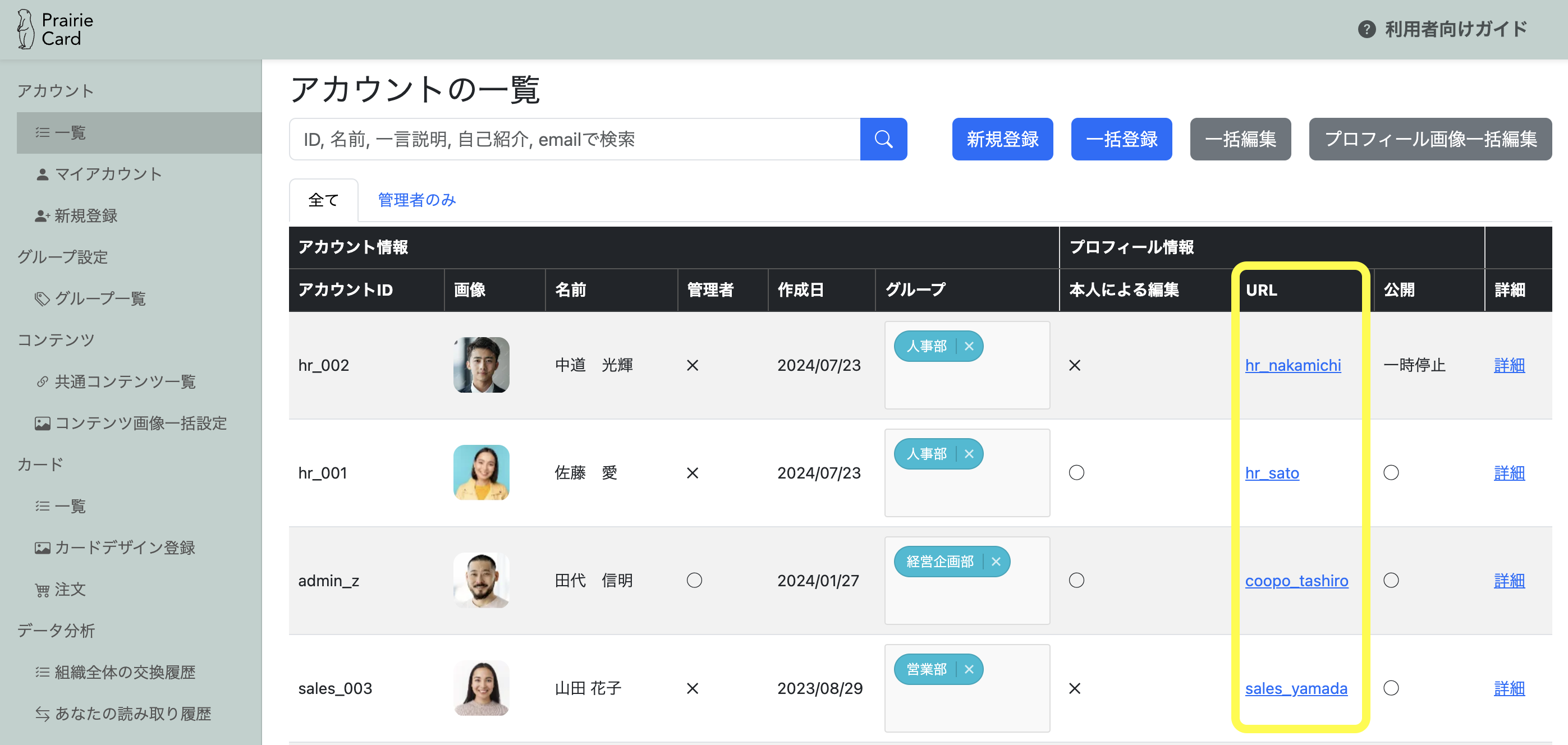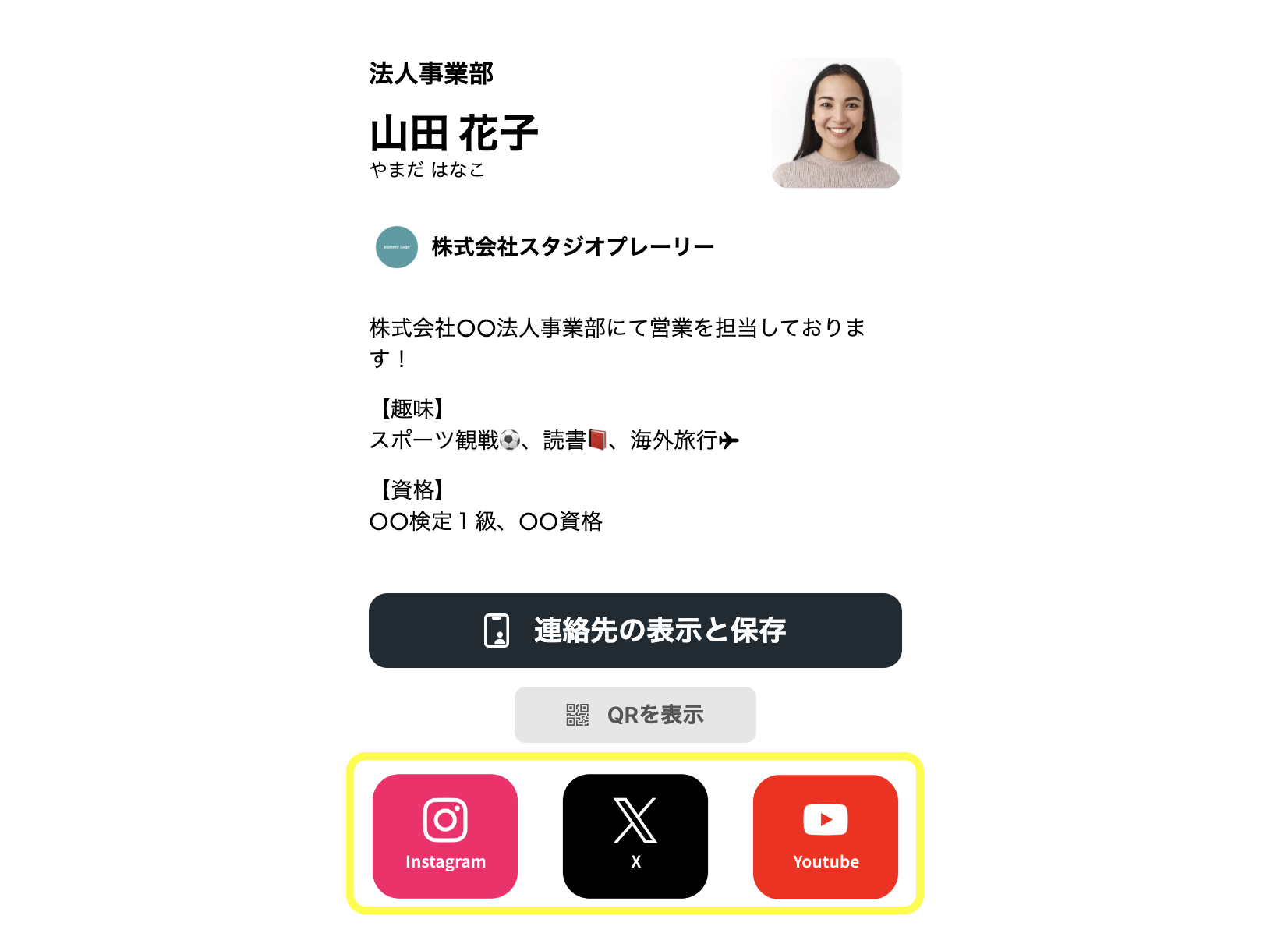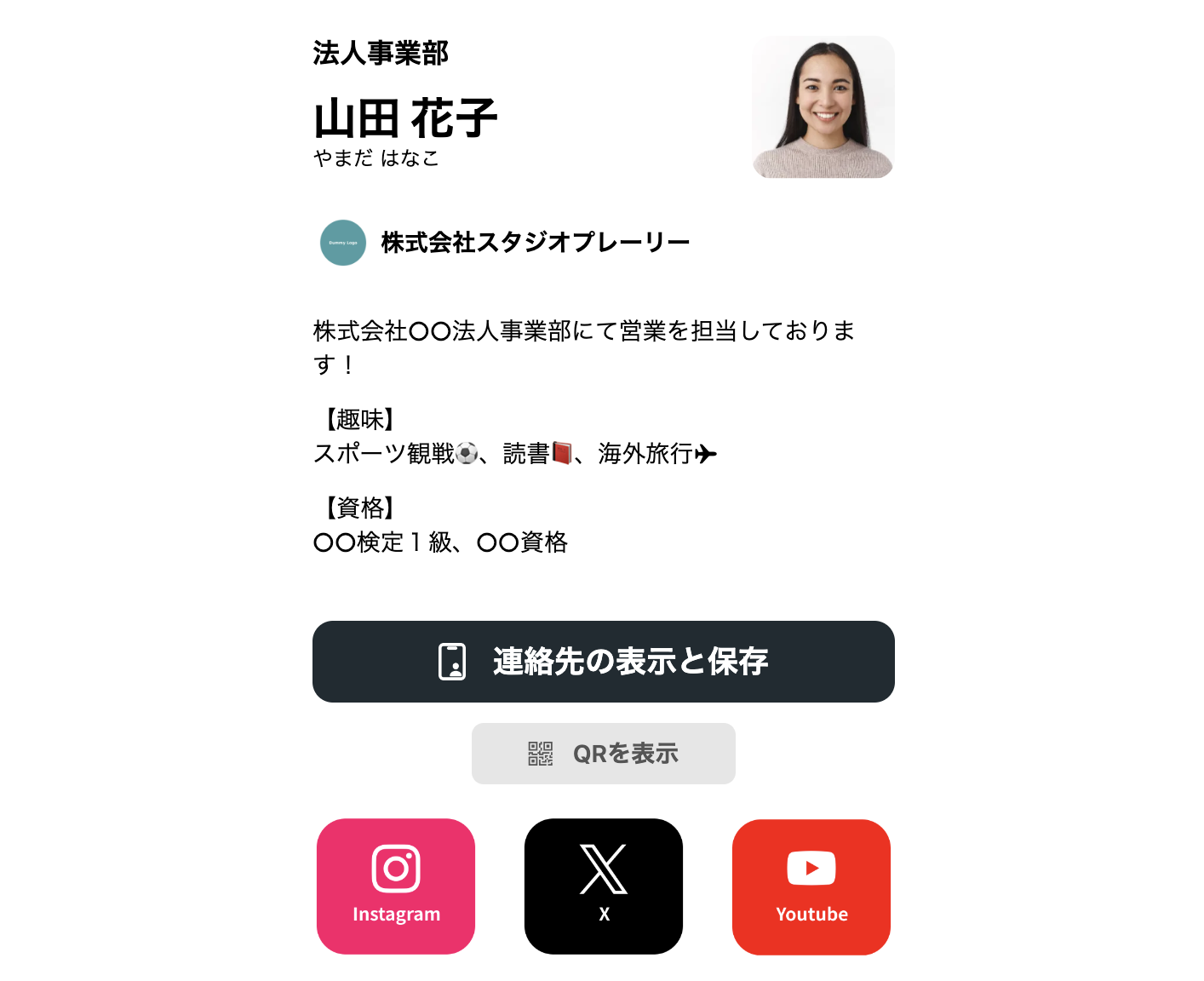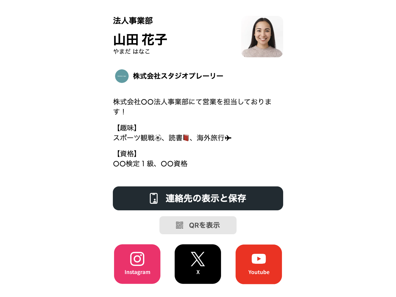 URLをクリックすると、カードをかざした際に表示される実際のプロフィールページをご覧いただけます。