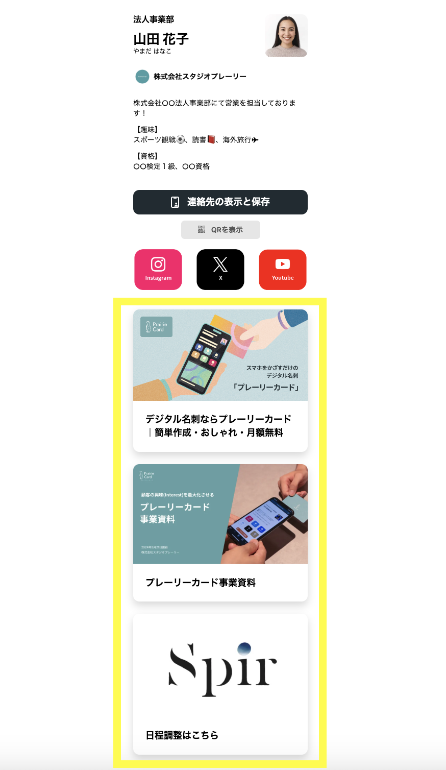 ②プロフィール中段部分(連絡先情報、SNS)