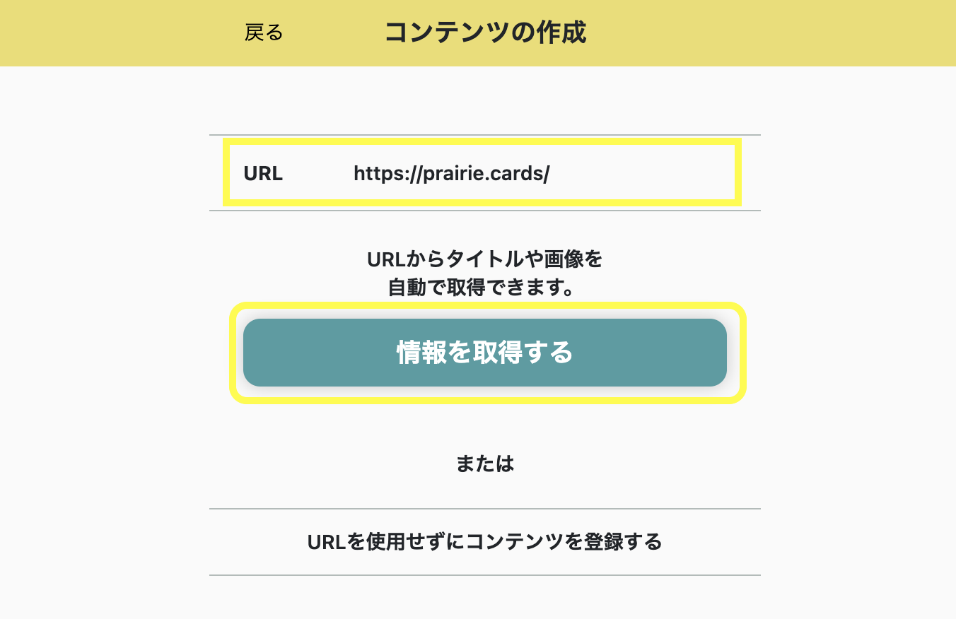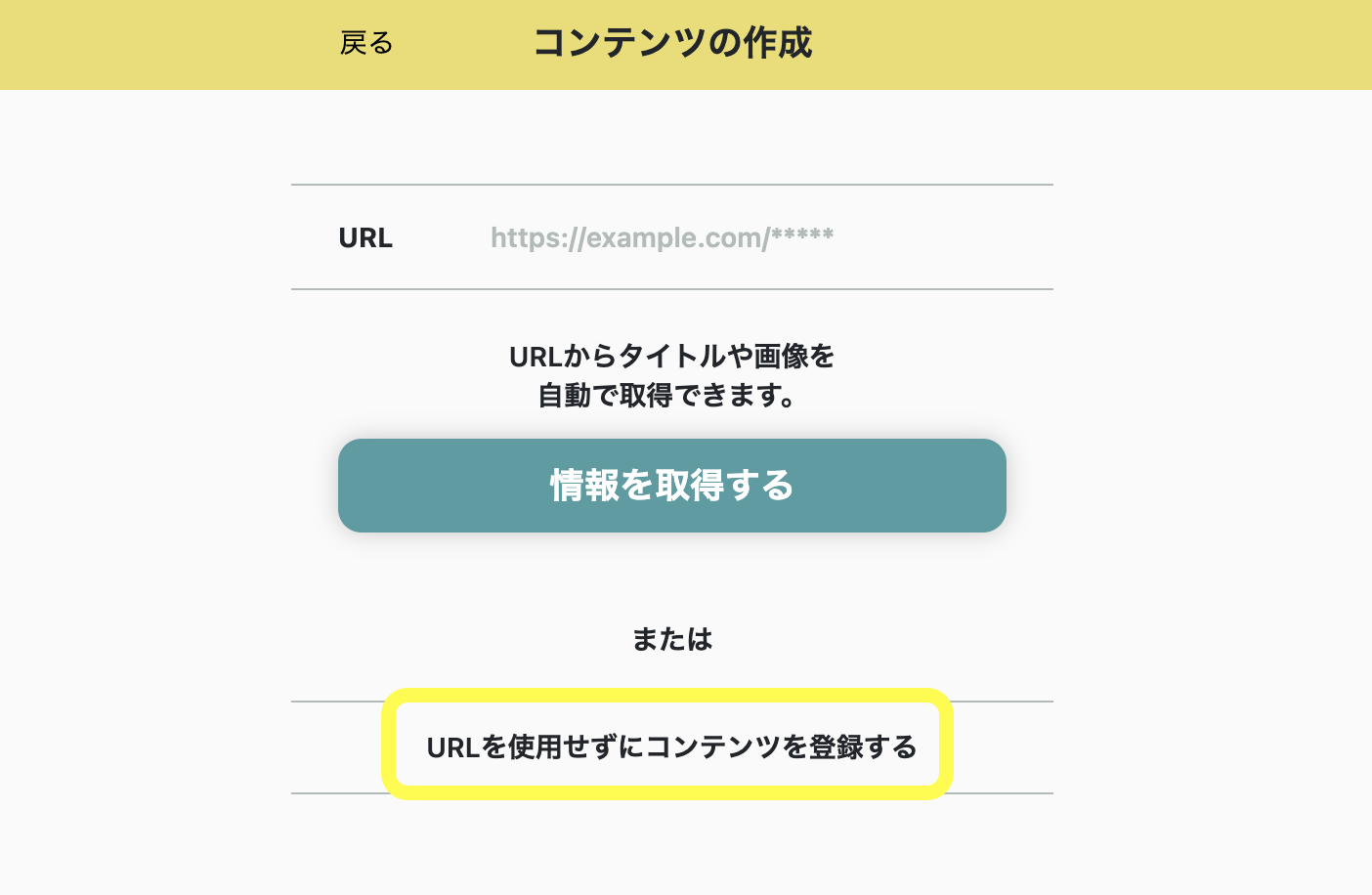 (B) URLを使用せずにコンテンツを登録