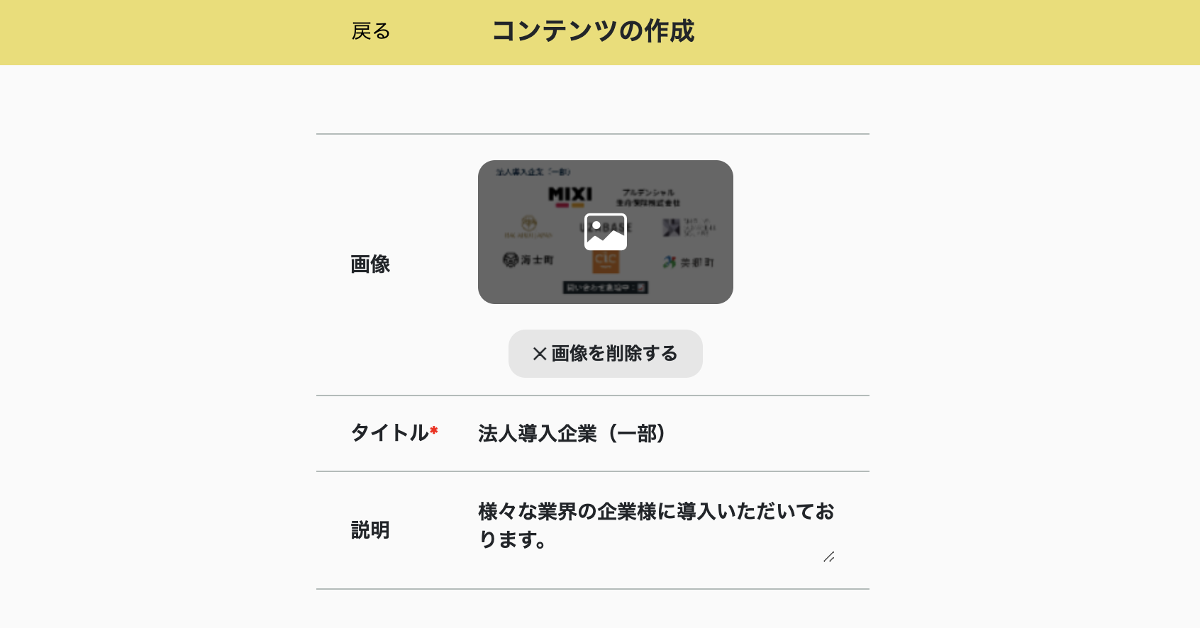 コンテンツとは、相手に訴求したい情報(ホームページ、資料、画像等)を複数掲載できる機能です。