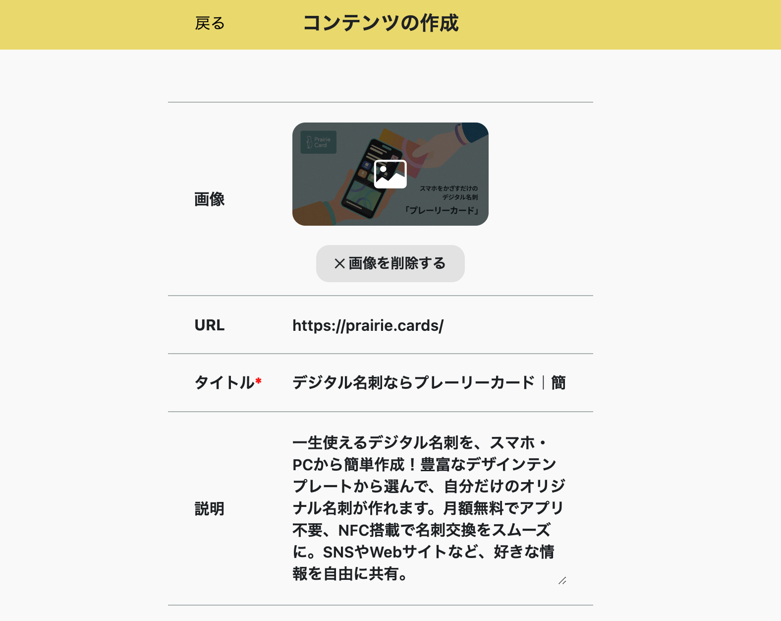 画像、タイトル、説明文を自由にご入力いただけます。