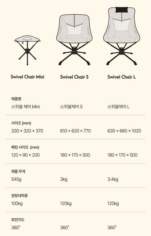 스위블 체어 Mini: 545g / 100kg