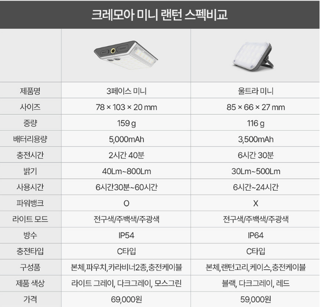 A. 두 제품의 기본 사양 및 기능은 동일하며, 차이점은 충전 단자 타입만 있습니다.