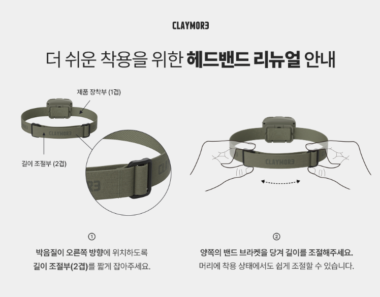 하단 이미지를 참고 부탁드리며, 머리에 착용하기 전에는 밴드가 느슨하거나 고정이 잘 안되는 것처럼 보일 수 있습니다.