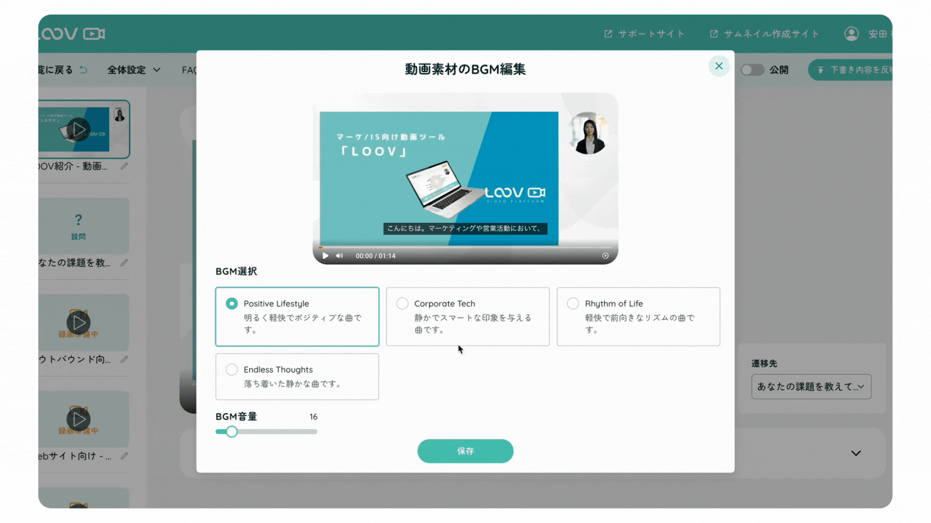 いつもLOOVをご利用いただき、誠にありがとうございます。 このたび、動画素材にBGMを設定できる機能をリリースしました。
