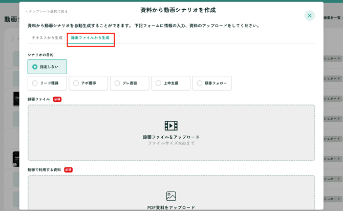これまでは資料ファイルをアップロードする形式でしたが、録画済みの動画ファイルをもとに、構成案・台詞案・録画資料などを自動生成できるようになりました。