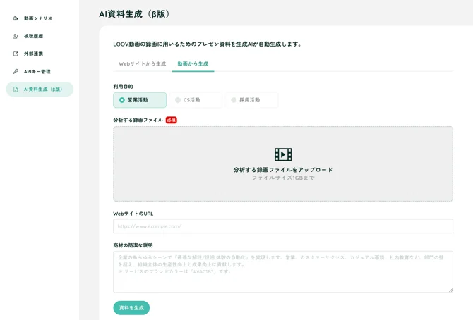 いつもLOOVをご利用いただきありがとうございます。このたび、AI資料生成(β版) に新たな入力方式として「録画ファイルから生成」 を追加しました。
