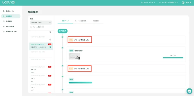 各視聴履歴ごとに、CTAがクリックされたかどうかを一覧で判別 できるようになりました。