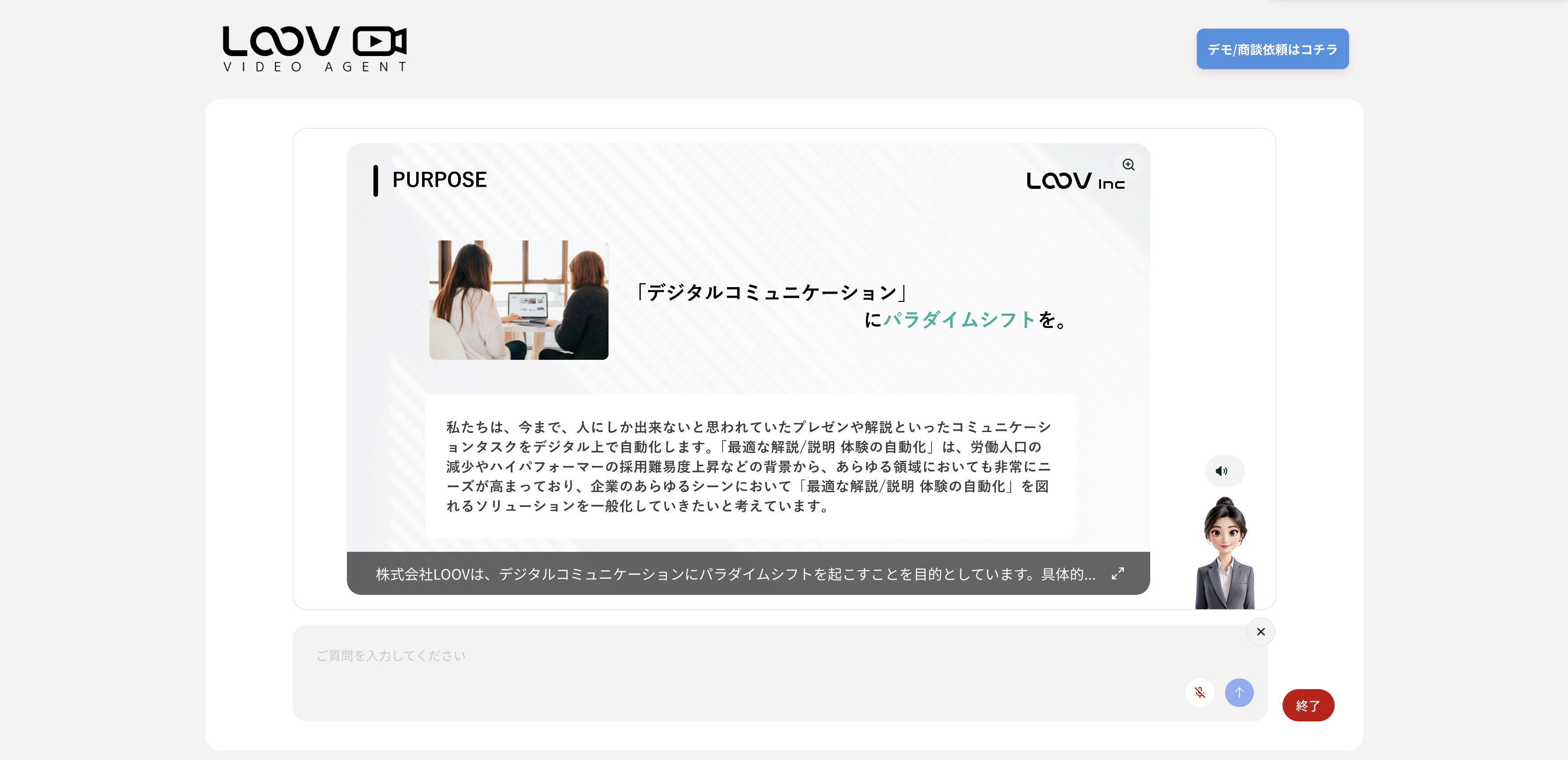 AIがアップロードしたPDFの中に該当するページがあると判断した場合、そのPDFのページも回答に含めて表示されるようになりました。加えて、アバターが表示されるようになりました。(本アバターはリップシンク対応をしておりません。)