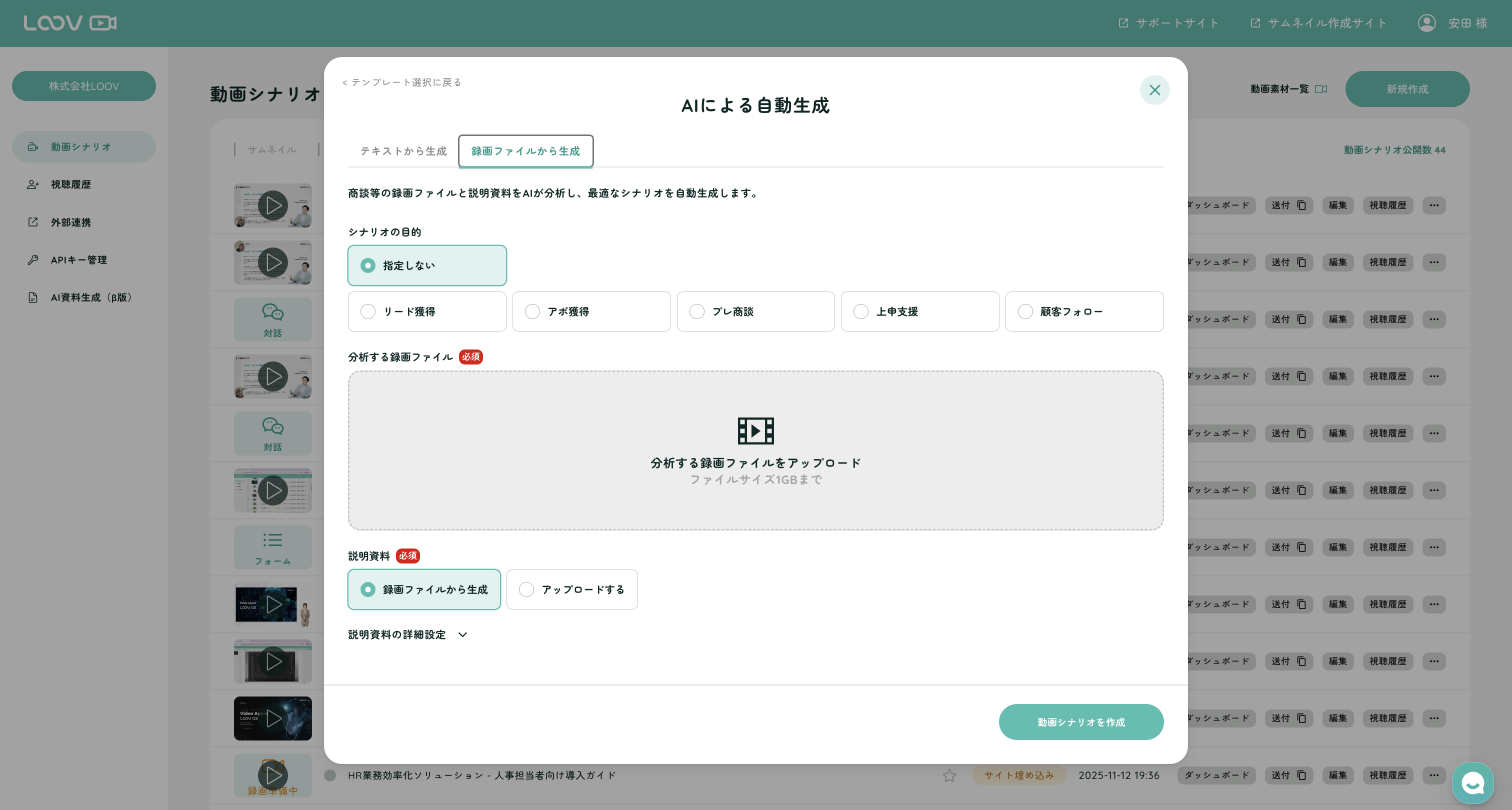 これまで、AIシナリオ自動生成で「録画ファイルから生成する」 を選択した場合、シナリオの中で使われる説明資料は別途アップロードする必要がありました。