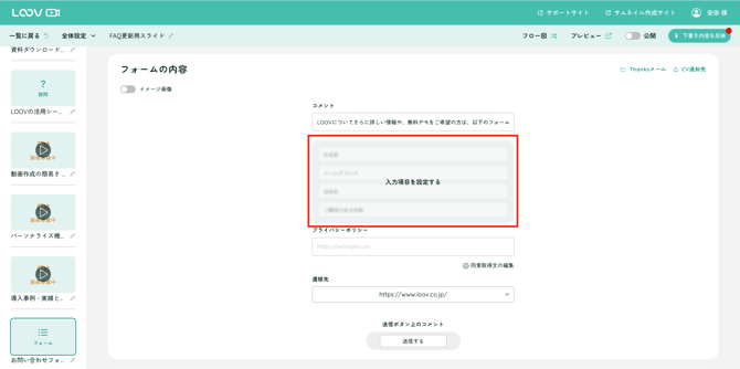 設問スライドを行き来できるように設定します。