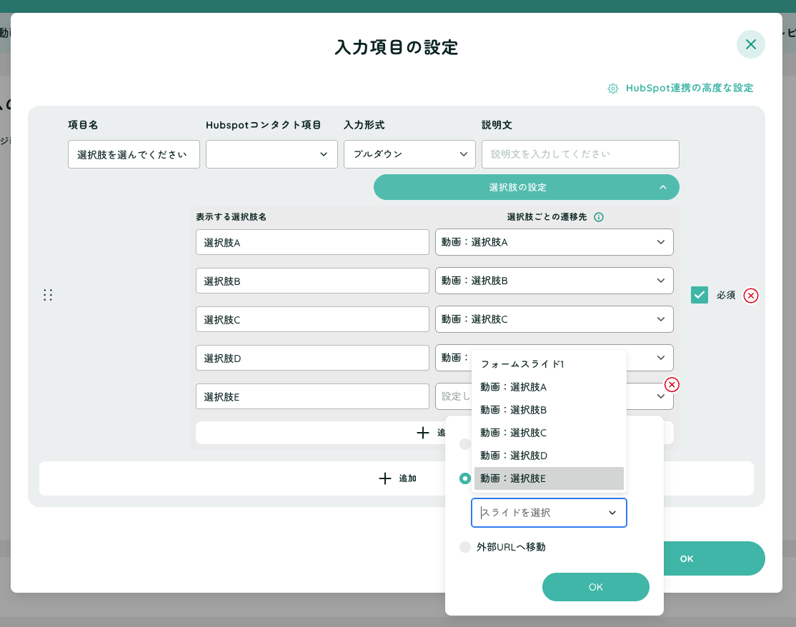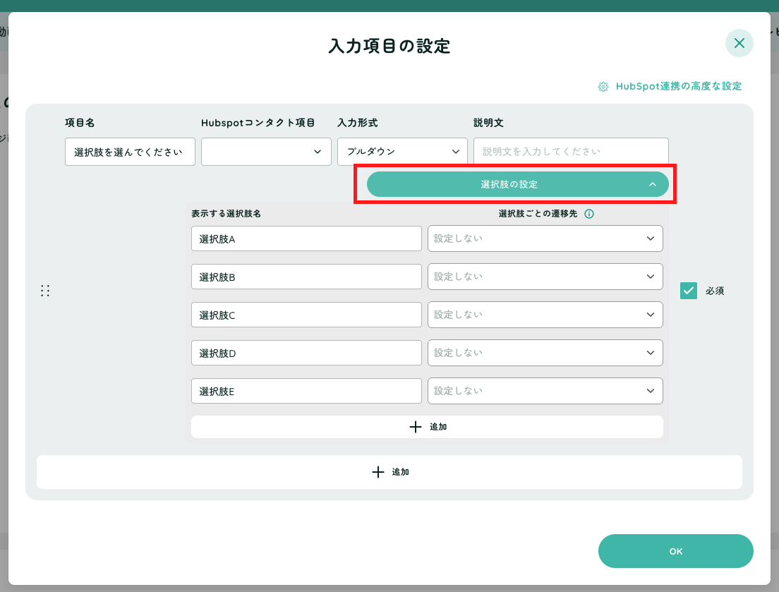 選択肢ごとに遷移先を設定することができます。