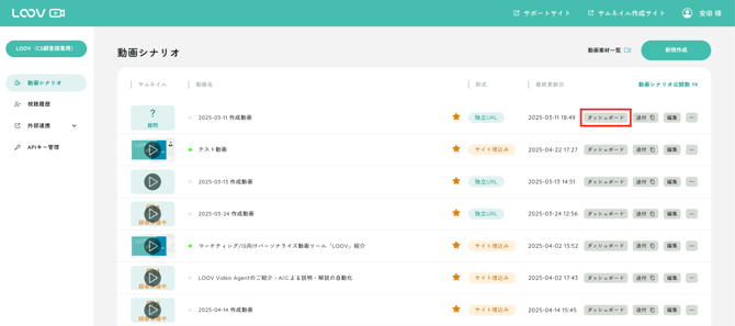 動画ごとにダッシュボードを閲覧できる仕様です。