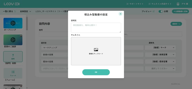 サイトに動画設置する場合のサムネイル画像と説明文を設定できます。