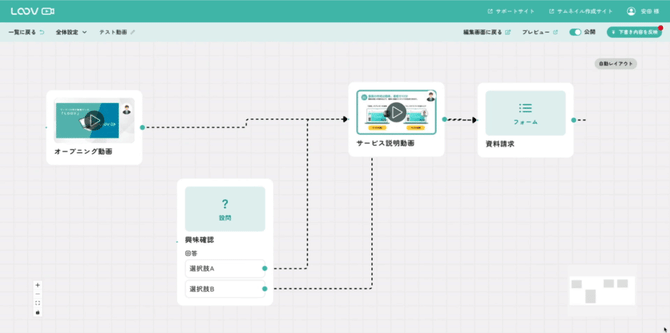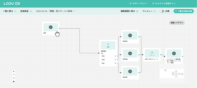 動画編集画面上部にある「フロー図」をクリックし、目的に応じて操作をおこないます。