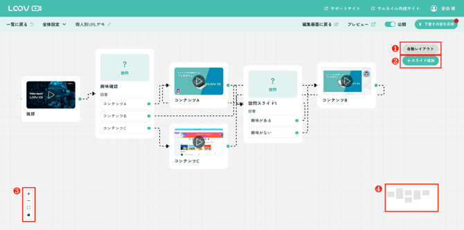各スライドはフロー図上でドラッグ&ドロップで自由に移動可能