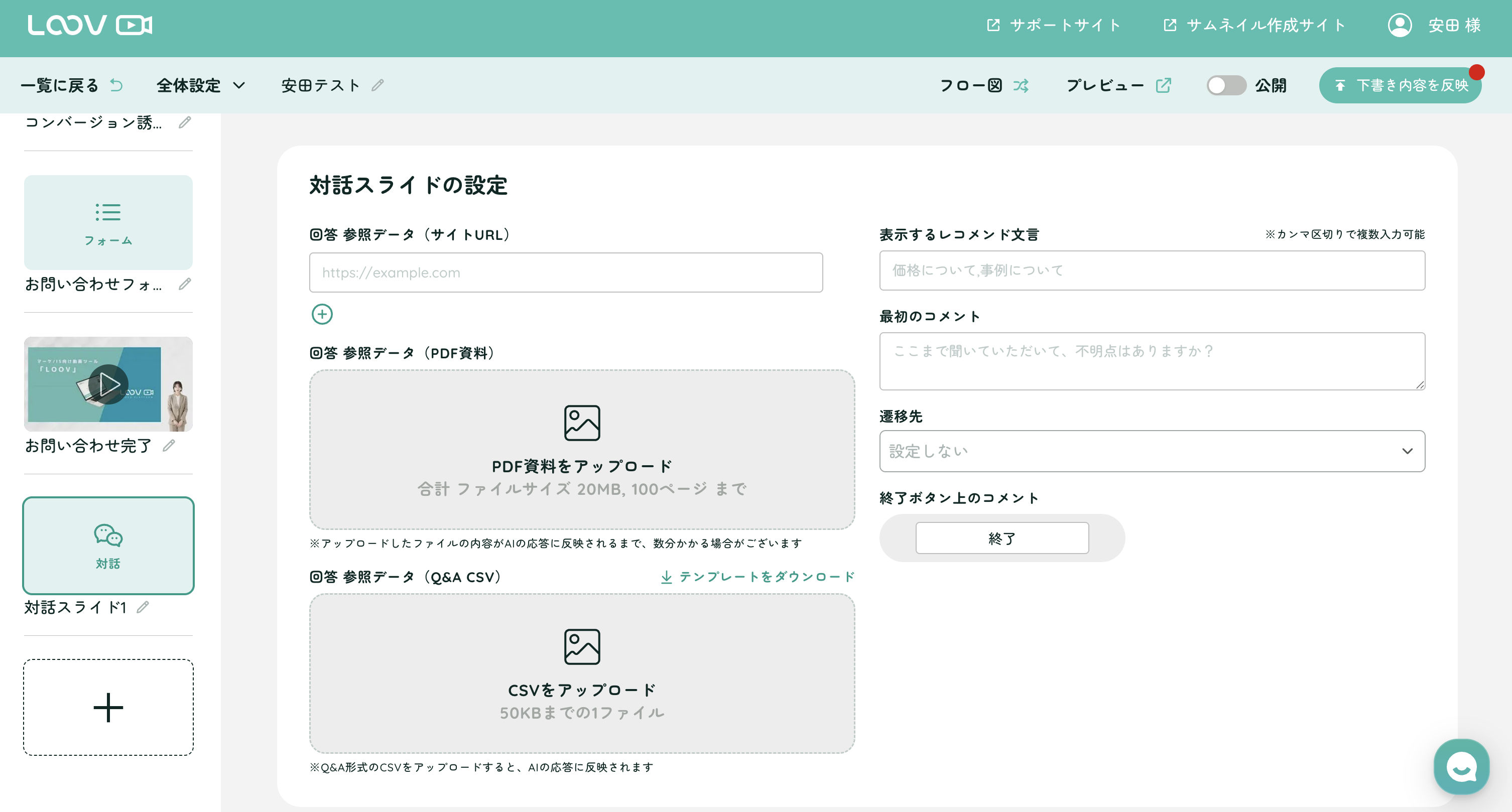回答 参照データ(PDF) | AIが参照するPDF資料(複数可) |