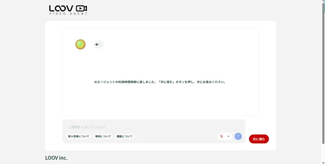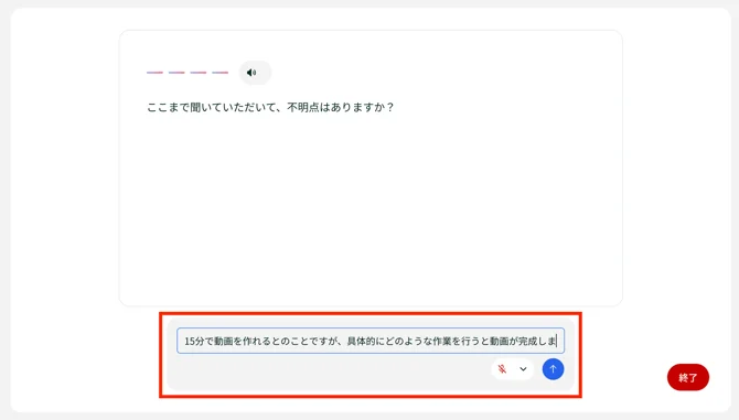 ※15分以上経過すると、AIエージェントとの対話は終了します。