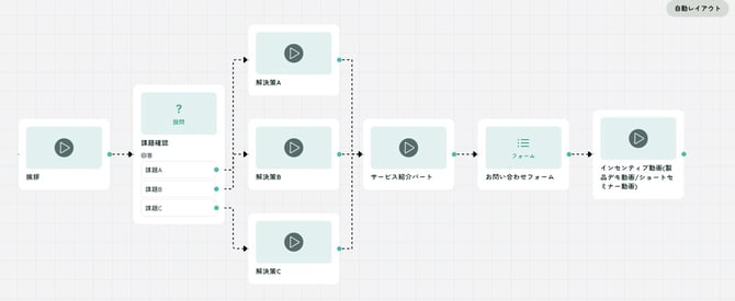 この動画構成を活用することで、訪問者一人ひとりの課題や検討段階を可視化し、最適なサービス紹介を行うことができます。また、取得したヒアリング情報は、その後の営業活動において貴重なインサイトとなり、商談の成功率を大幅に向上させます。
