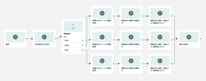 「選択内容や視聴履歴に応じて、商談の内容をカスタマイズすること」を前提に作成する