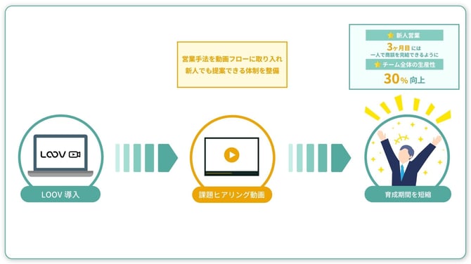 導入後、新人営業でも3ヶ月目には一人で商談を完結できるようになり、チーム全体の生産性が30%向上しました。