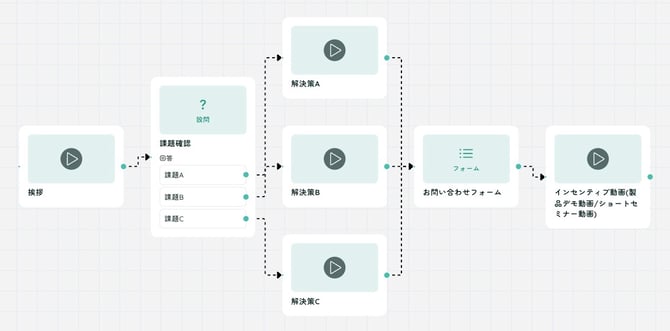 課題ヒアリング&サービス紹介動画により、構造化されたフレームワークに沿って課題を掘り下げ、それぞれの課題に最適化されたソリューションを自動的に提示できます。これにより、顧客は「自分の課題を深く理解してくれている」と感じ、提案への納得度が大幅に向上します。