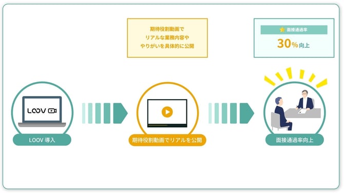 面接でも「動画を見て覚悟ができている」という候補者が多くなり、面接通過率が30%向上し、かつ入社後の満足度も高い状態を維持しています。