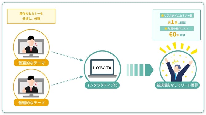 さらに、リアルタイムセミナーは月1回に削減でき、年間の制作コストを60%削減しながら、リード獲得数が増加しました。