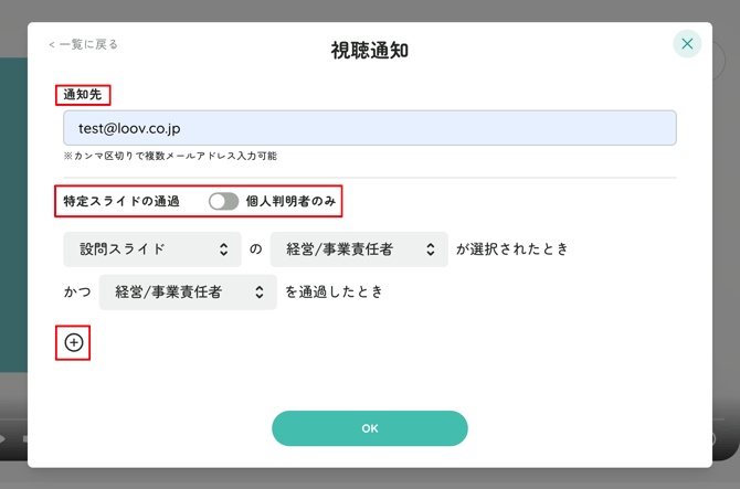 「+」を押すことでAND条件で複数スライドの通過も設定可能