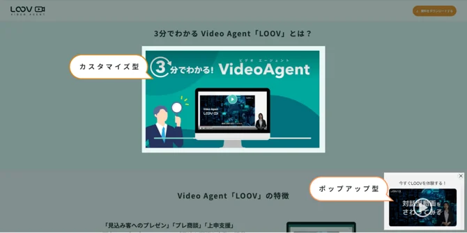 また、「ポップアップ型」の動画と、複数の「カスタマイズ型」の動画を同時に設置することも可能です。 いずれの場合も、下記手順に従って headタグ内のLOOVの埋め込みコードが1つだけになるようにしてご利用ください。