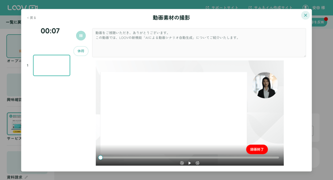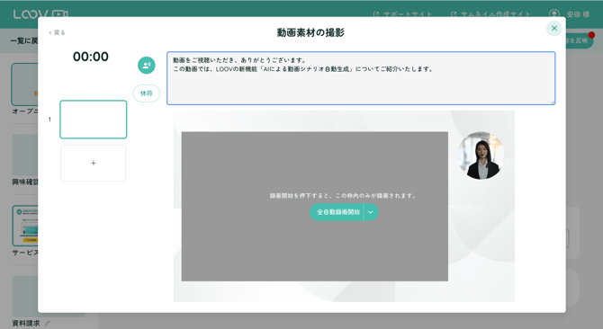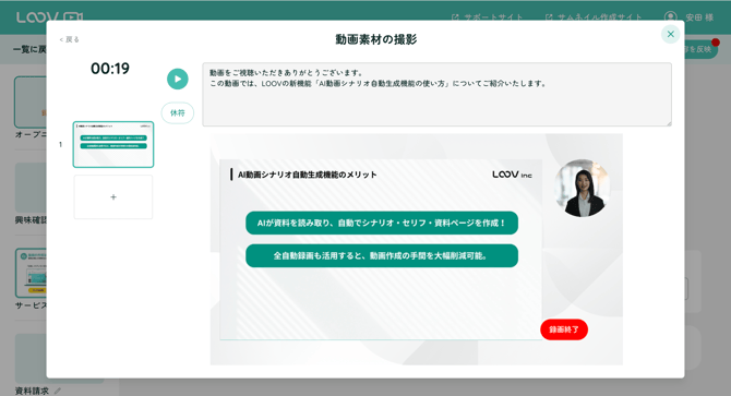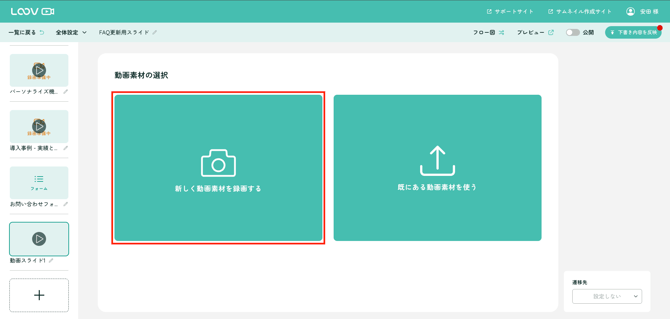 スライドの新規作成画面より、動画スライド > [新しく動画素材を録画する] をクリック