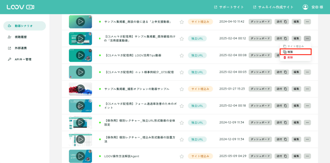 対象の動画の「…(3点リーダー)」をクリックし、[複製] を選択します