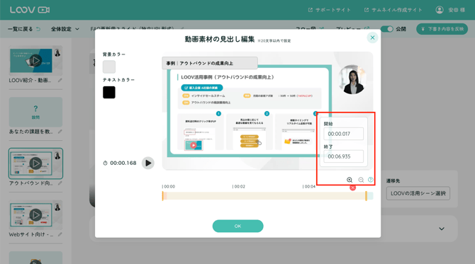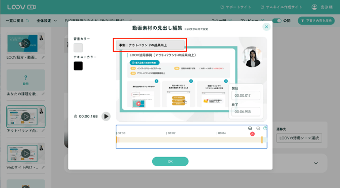 編集が完了したら、「OK」をクリックしてください。 完了すると、見出しが動画に反映されます。