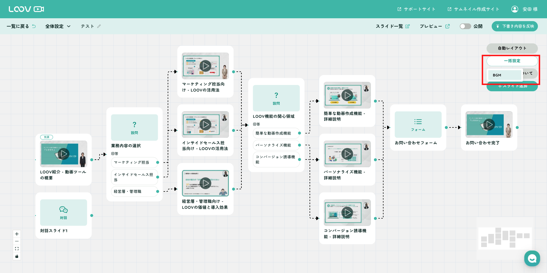 動画編集画面の「フロー図」画面より操作可能です