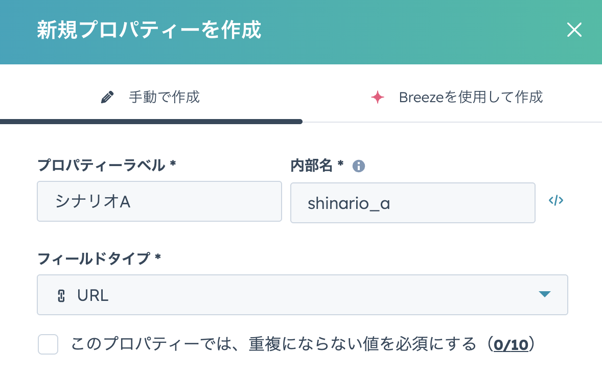 ※)個人別URLを格納は新しいプロパティを作成することを推奨しておりますが、既存のプロパティを利用することも可能です。