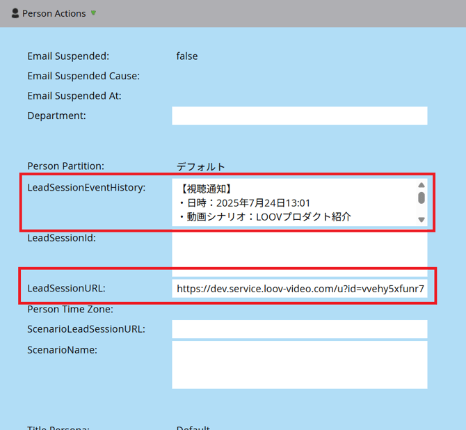 LeadSessionEventHistory 視聴開始や、条件通知のデータを記載するために用いります。